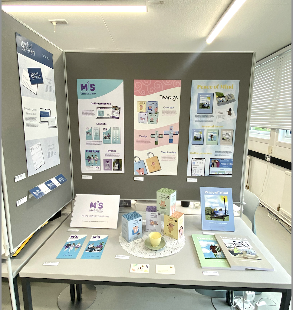 Peace of Mind Careers Consultant rebrand Teapigs MS Berkshire Therapy Centre rebrand Data graphics for display Ribbon - Breast Cancer website Degree show display